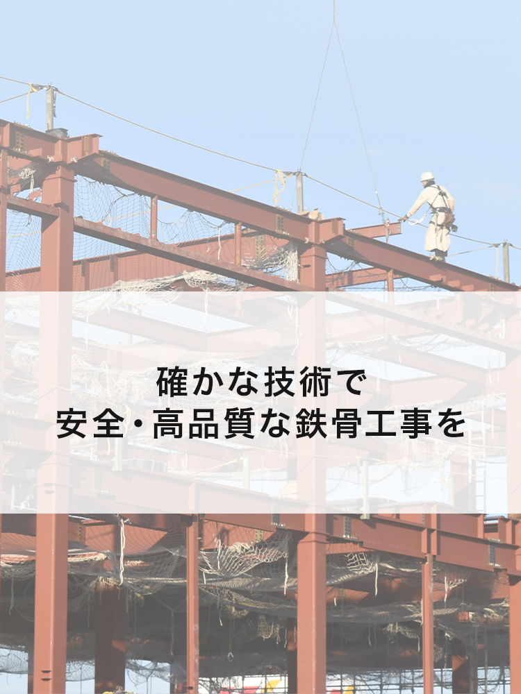 国家資格「一級とび技能士」も在籍。正確な知識と技術で高品質な鉄骨工事を行います。
