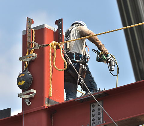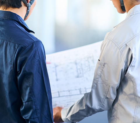 建方・ボルト入れ・本締めなどの工程を、安全管理を徹底しながらスピーディーに実施。熟練のチームワークで正確な施工を行います。
